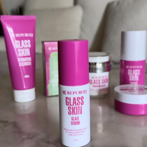 The fifth and final step is to use the glass skin glaze serum by K-Republiq. This lightweight, gel-type serum is designed to soak into your skin fast, giving it a smooth, dewy “glass skin” look. It uses ingredients like polyglutamic acid (PGA), which can hold up to 10 times more moisture than regular hyaluronic acid, plus niacinamide to help shrink pores and calm redness, and is a gentler alternative to retinol.