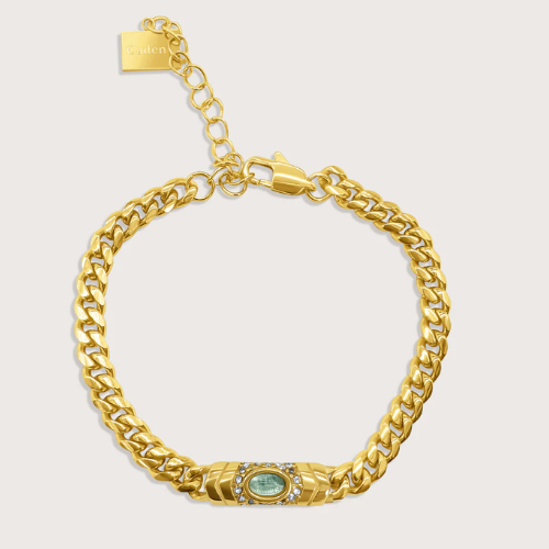 The Bella Bracelet in Gold is one of those rare pieces that holds its own without needing any extras. Made from 316L stainless steel, the same grade used in luxury watches, it’s built to hold up through daily wear without losing its edge. The bracelet is finished with a layer of real 14K gold plating, thick enough to sit comfortably next to fine jewelry without feeling out of place. At the center sits a natural stone, each slightly varied in tone, framed with subtle detailing that keeps the look grounded.